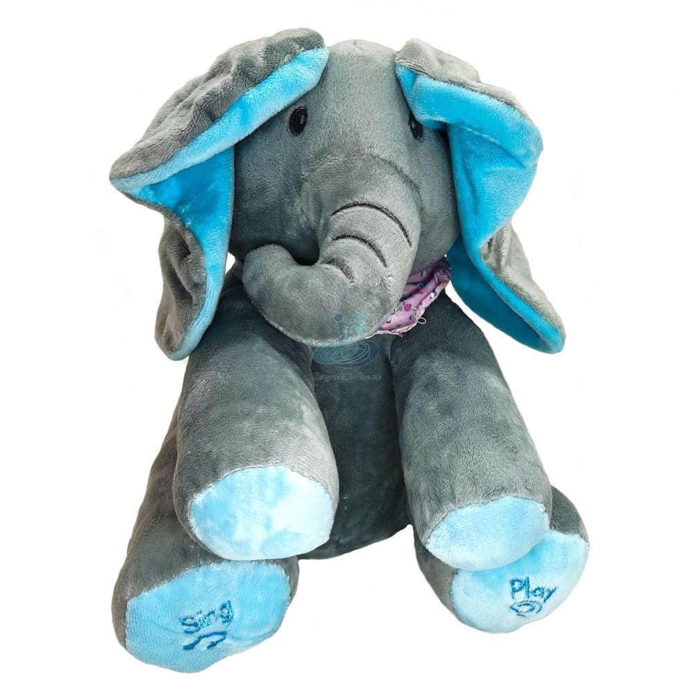 Cu ajutorul acestui elefant, copilul se poate juca celebrul joc „Cucu-Bau”, pentru ca acesta misca din urechi si isi acopera ochii.