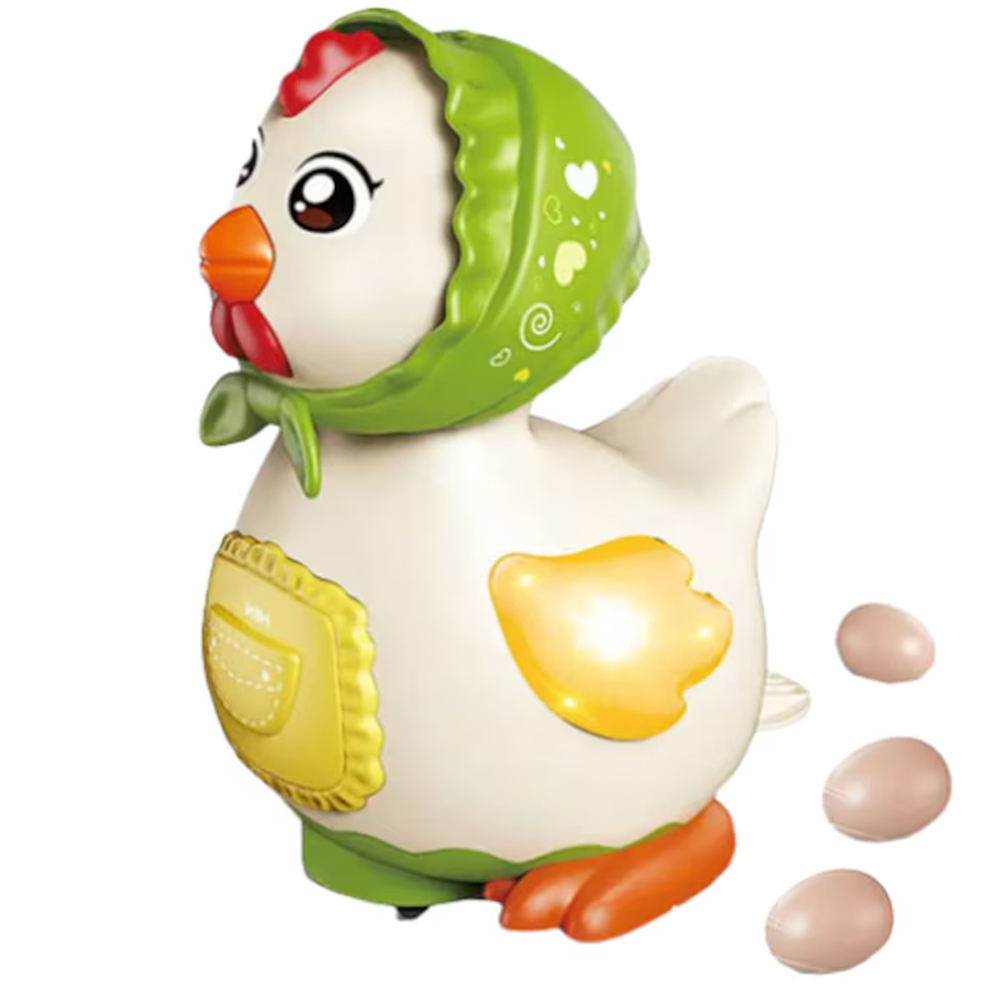 Functia speciala de a face oua in timp ce se deplaseaza face aceasta jucarie si mai amuzanta. Copiii vor fi surprinsi si incantati sa vada cum gaina merge si lasa oua in urma ei.
