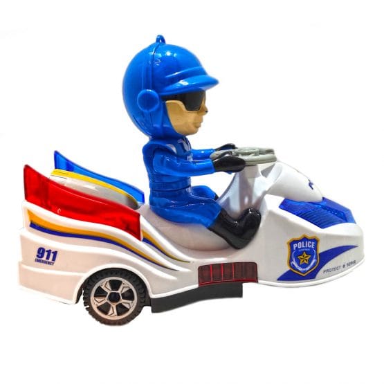Lumineaza si scoate sunete specifice unei motociclete adevarate de politie.