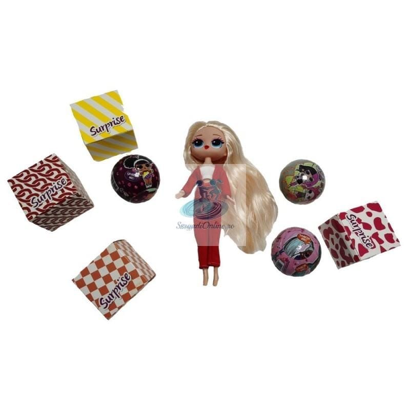 Papusa cu 7 surprize: 3 bile si 4 cutiute.