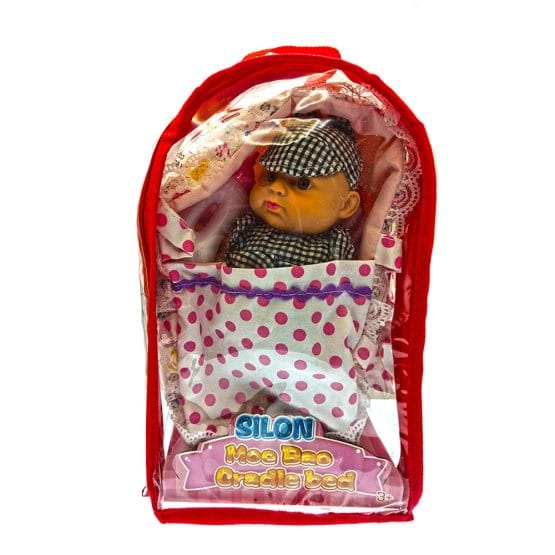 Papusa bebelus 20 cm vorbeste in limba romana si are asternut pentru somn, dar si biberon.