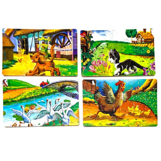 Puzzle lemn „Pisicuta” – 4 planse * 12 piese, cutie cu inchidere magnet