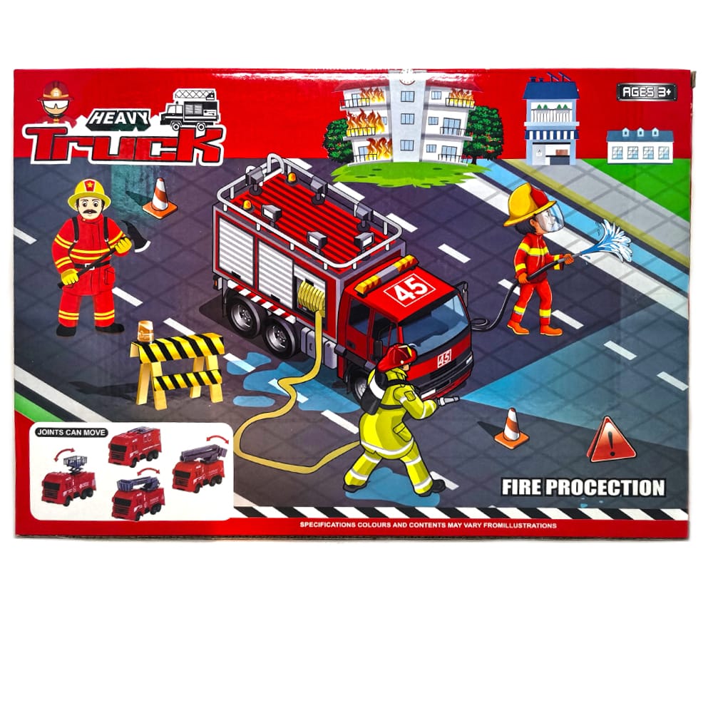 Jocul contine o macara, cladirea politiei, un mini camion pompier, o motocicleta, diverse alte accesorii, dar si o figurina a unui pompier.