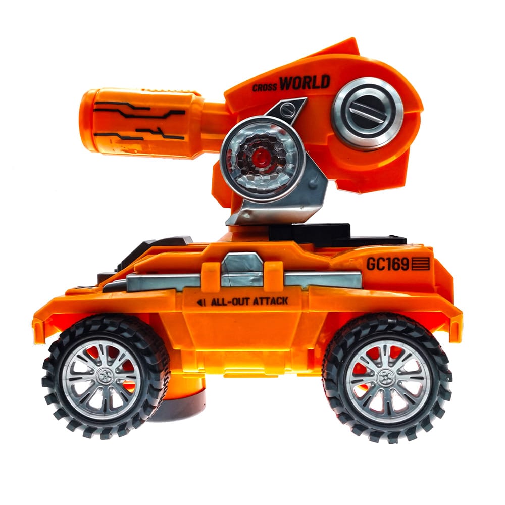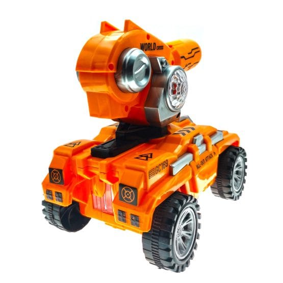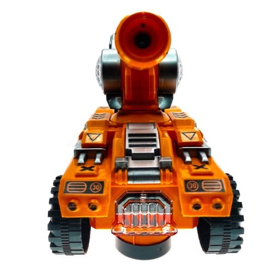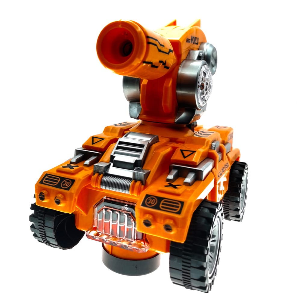 Tancul care scoate abur este o jucarie atractiva. In timp ce merge, acesta se roteste si proiecteaza lumini frumos colorate.