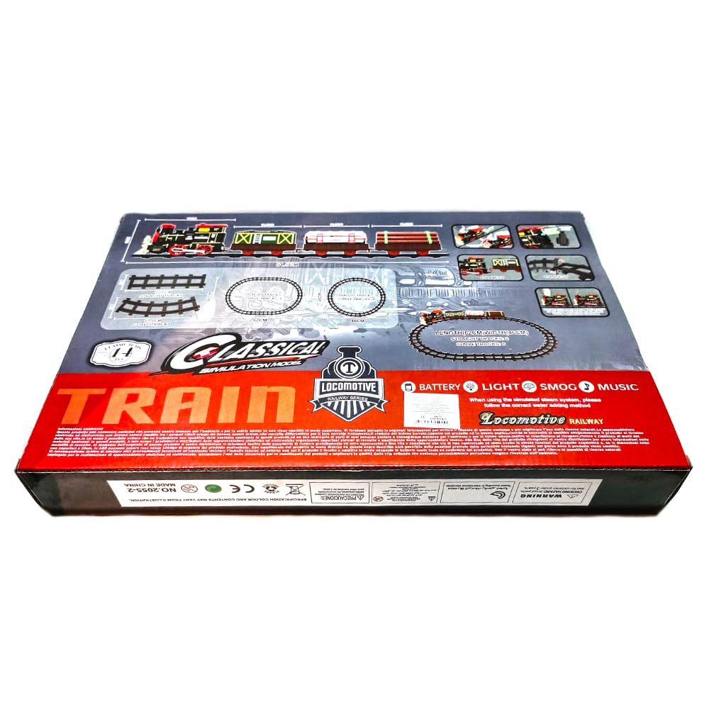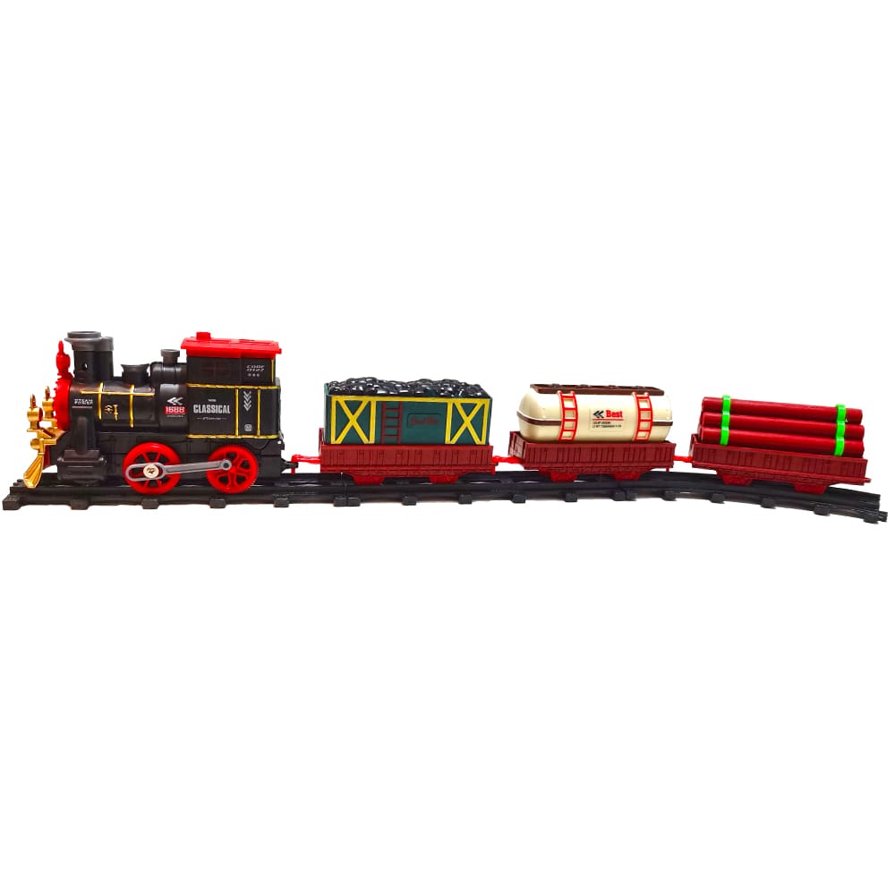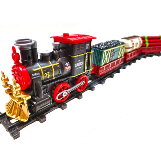 Locomotiva si vagoanele din set sunt fabricate dintr-un material plastic rezistent iar locomotiva este echipata cu lumini LED, astfel incat in timpul cursei creeaza un spectacol luminos.